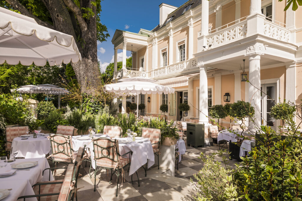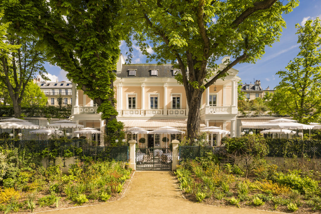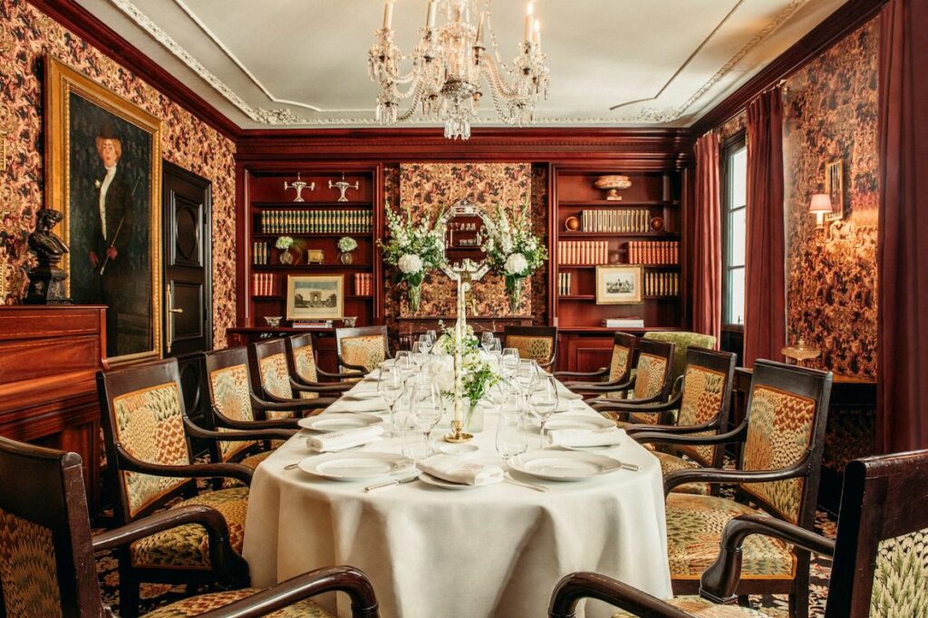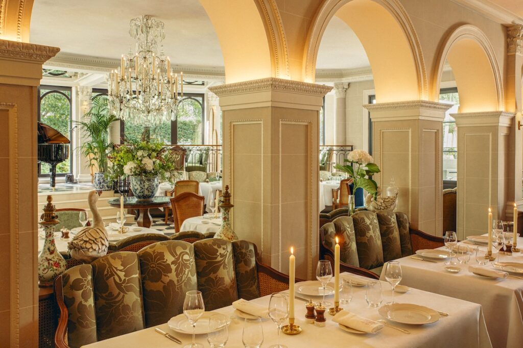 Pour accompagner cette renaissance, Cordelia de Castellane signe un décor tout en subtilité. Sans jamais trahir l’âme du lieu, elle en révèle une nouvelle lecture, entre classicisme parisien et modernité feutrée. Les matières dialoguent avec délicatesse, les tonalités s’adoucissent, les boiseries se patinent. Chaque détail semble pensé pour prolonger l’histoire, dans une harmonie naturelle avec le jardin omniprésent.