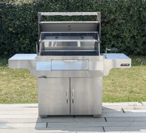 Nous avons été séduits par le charme unique de ce barbecue à charbon qui reprend l’esthétique raffinée d’un modèle à gaz. Son gabarit imposant, son design soigné et sa surface de cuisson XXL en font un véritable barbecue de prestige. Ce modèle haut de gamme, construit en acier inoxydable, inspire confiance par sa robustesse et sa durabilité : Garantie 15 ans sur la cuve et le couvercle, et 2 ans sur les autres pièces. Le système de réglage du bac à charbon permet une maîtrise parfaite de la température, et les grilles en fonte assurent des cuissons homogènes et marquées à la perfection. Autre point fort : le montage. Les instructions sont claires, les pièces numérotées et l’outillage est fourni. À deux personnes, comptez 1 h 30 pour l’assembler. La cuve et le couvercle étant lourds, mieux vaut être deux pour l’installation finale.Les poignées chroméesajoutent une touche d’élégance, et le tiroir à cendres coulissant facilite grandement le nettoyage. Une fois la cuisson terminée, le barbecue se nettoie rapidement et reste impeccable. En résumé, le Napoléon PRO 605est un investissement durable, pensé pour les amateurs passionnés comme pour les professionnels exigeants. Il allie élégance, puissance, confort d’utilisation et large polyvalence de cuisson. Seul bémol : le tournebroche et la housse de protection sont en option. Mais au regard de ses performances et de sa qualité de fabrication, il offre un excellent rapport qualité/prix. Design haut de gamme, performances professionnelles et confort d’utilisation : le Napoléon PRO 605 s’impose comme une référence pour les amateurs de grillades exigeants.