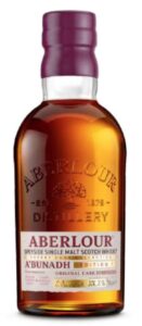 Non filtré à froid et embouteillé à 56,2 %, A’Bunadh exprime toute la générosité du sherry. Issu d’une double maturation en fûts Oloroso et Pedro Ximénez de premier remplissage, il révèle un nez riche de pomme rouge, mûre, caramel et épices. La bouche, ample et intense, mêle cassis, poire épicée, anis étoilé et toffee vanillé. La finale, longue et sirupeuse, signe un single malt puissant et authentique, fidèle à l’ADN d’Aberlour (90 €).