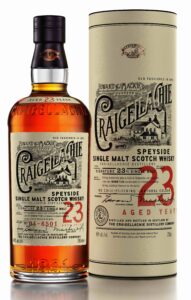 Réputée pour son style audacieux, Craigellachie livre avec ce 23 ans un single malt de caractère. L’utilisation des worm tubs confère au distillat une texture charpentée et une légère note fumée. Vieilli en fûts de bourbon et de sherry, il dévoile des arômes intenses de fruits tropicaux, miel, cuir, vanille et épices. Puissant mais équilibré, ce malt atypique s’adresse aux amateurs en quête de personnalité et d’authenticité (290 €).
